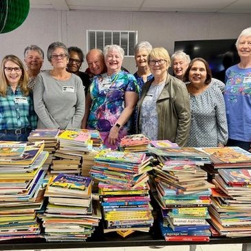 Our 2024-2025 doner school, Maplewood Elementary, collected 463 books and ARTA members collected 410 books for a total of 873 books. In April 2025, ARTA members gathered at Cook Elementary school's library to place book plates inside the books. Then they were sorted for distributions to the students.